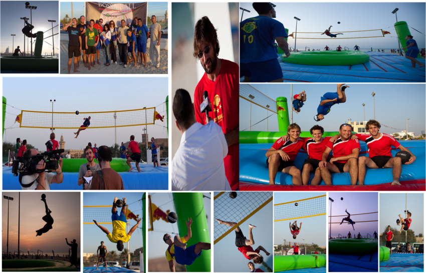 Bossaball is an innovative sport concept which combines football, volley ball, gymnasium, sports with music and other spectacular actions, it is played on inflatable play court and trampolines divided by a net. BB shows are conducted through experienced professional master players who conduct spectacular shows and provide fun and excitement to the public.